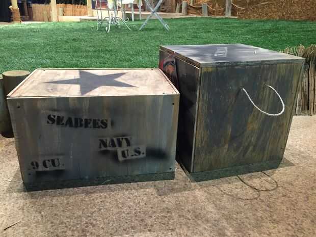 Vamos construir cajones como apoyos para el juego del Pacífico Sur.Paso 1: materiales5: 10' 2 X 43: 10' 1 X 4Pintura en aerosol negroUñas de gel:Pegamento para maderaTablero de la espuma para las plantillas2: 4 x 8 de madera contrachapada de 1/2 pulg
