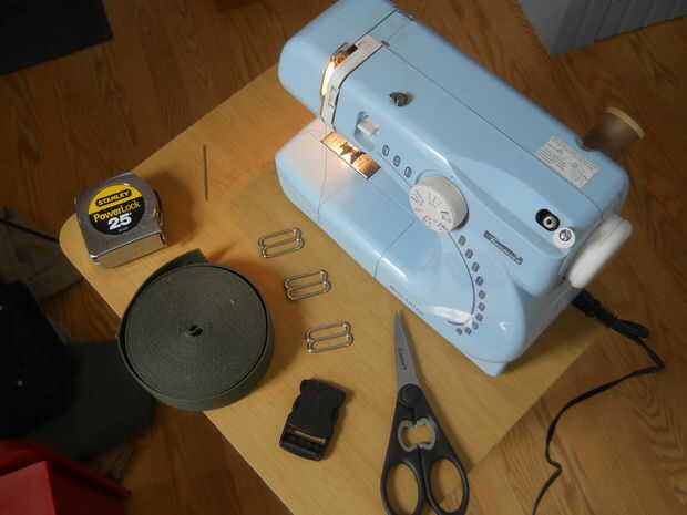 Aprox. 18' de cinta, corte en tres 6' piezas hoy estoy usando cintas de algodón amplia de 1.5", pero también he utilizado cinturones de karate y cinturones de seguridad del auto.