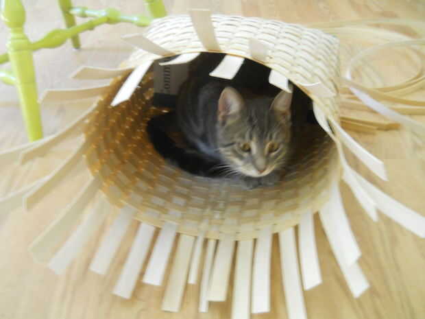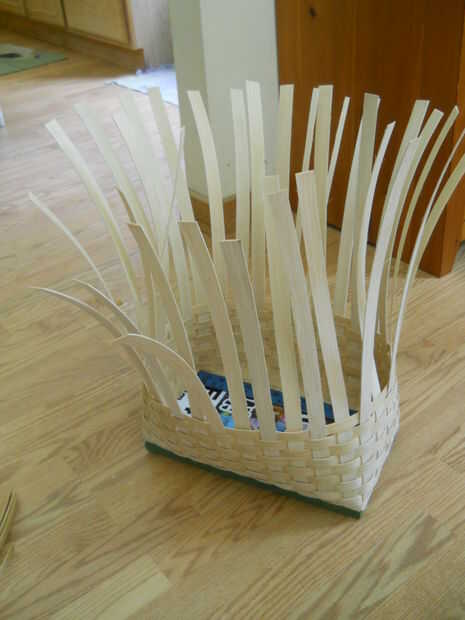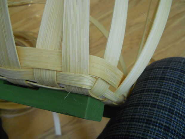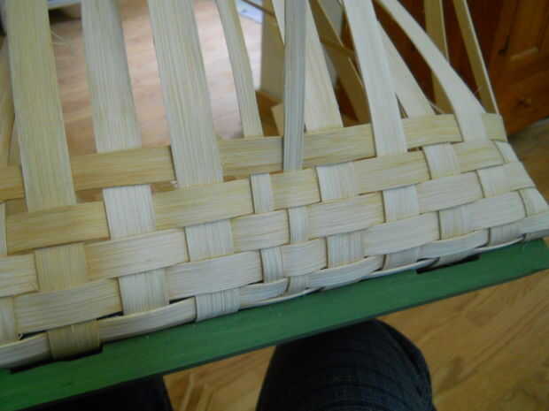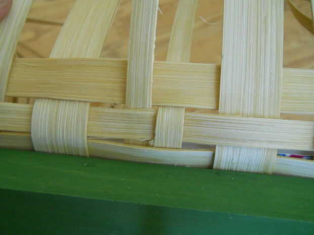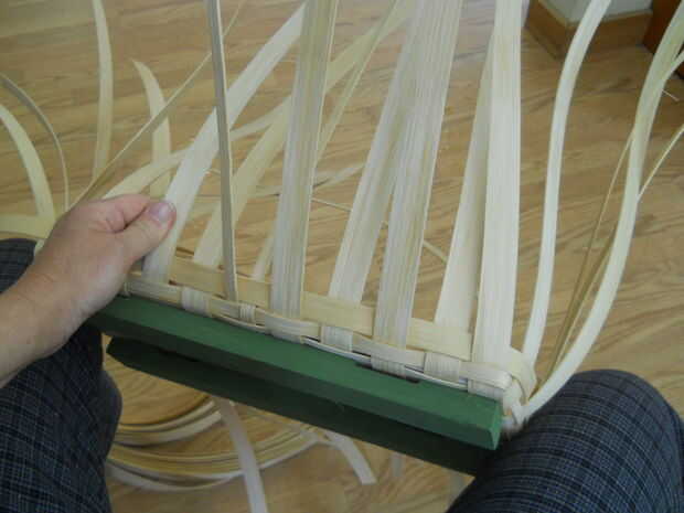 Obtener su rodillo de 5/8 caña--weaver--fuera del agua y cono 3 pies de una sola pieza (solo cortado a un largo, disminuyendo el punto con las tijeras) a partir del uno de los lados cortos, empezar a tejer la cesta, para tratar la corte habló como dos rayos y manteniendo cada rayo recta hacia arriba y hacia abajo, prestar atención a mantener la Plaza de las esquinas , apretado, pero no demasiado apretado! Bajo, sobre, bajo, empujando la caña hacia abajo para hacerlo firmemente y mantener todo incluso. Por el tercero o cuarto 'fila', su cesta va a tomar forma y será más fácil de manejar. Continúe esto hasta que llegue un par de pulgadas de la parte superior de su rayo más corto.