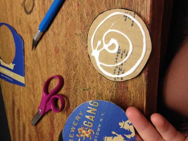Ahora es el momento para comenzar a construir. Usando el pegamento blanco, ate el pedazo de 6 pack para el cardbaord.
