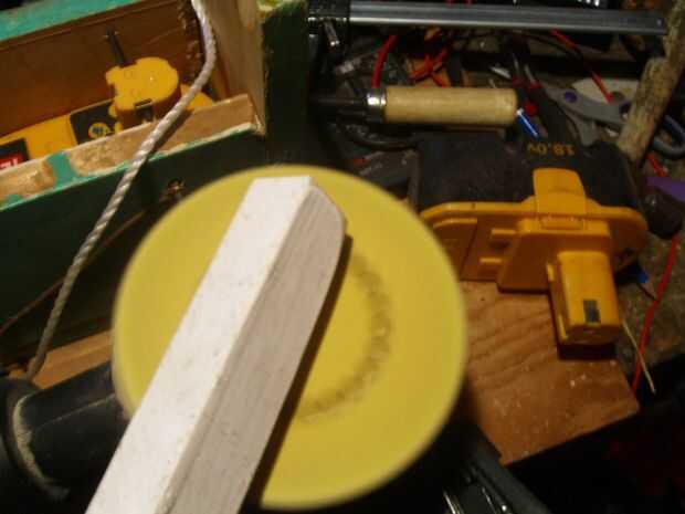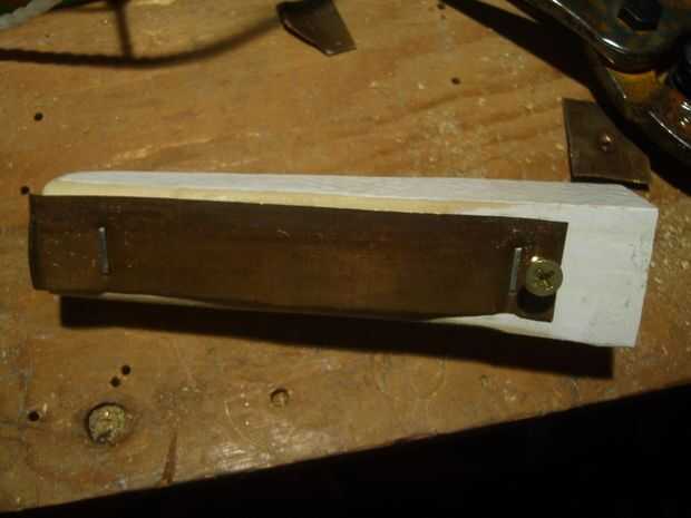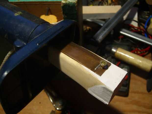 Apenas podía sujetar a su herramienta con puntas de clip o algo, hice este enchufe por lo que era más fácil de conectar y desconectar. Yo solo lijar un tablero hasta vagamente era la misma forma que el agujero en la herramienta. Entonces sujetado con grapa una tira de cobre a cada lado y condujo algunos tornillos allí así que podía conectar los cables o conductores de clip o lo que sea más tarde.