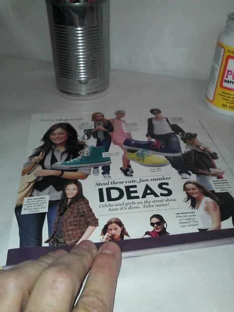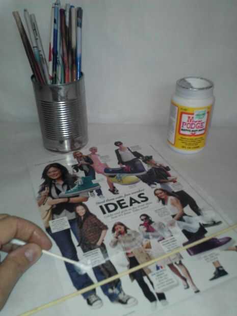 Tomar un pincho de brocheta-ka-bob y coloque en la parte inferior de una página de revista. Usando un q-TIP, extender una pequeña cantidad de pegamento de decopauge a través de la página de 1" por encima de la brocheta. Doble la parte inferior de la página y presione hacia abajo sobre el pegamento. Comenzar a rodar para arriba la parte inferior de la página tan ajustadamente como sea posible hasta que tenga la página entera enrollada. Asegure con cola decopage. Deslice la brocheta hacia fuera desde el centro y reservar. Tomar el pincho y repetir con otra página. No intente conseguir pegamento en la brocheta de madera mientras se trabaja. Esto le llevará varias horas, así que espacio hacia fuera sobre varios días trabajando en ello mientras estás viendo TV y se va a ir bastante rápido. Necesité cerca de 100 páginas para mi caja.