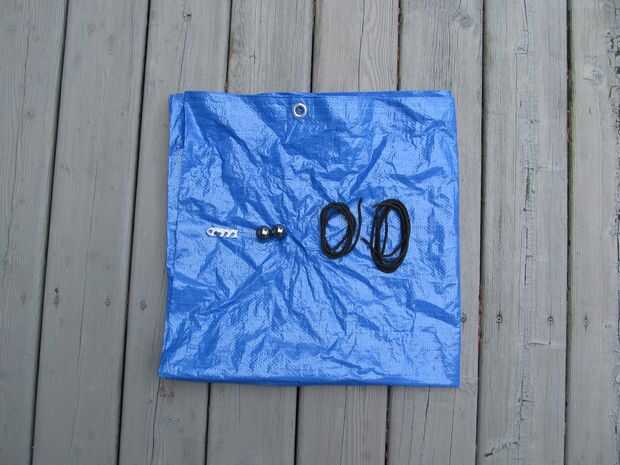 -Por lo menos 3 pies cuadrados de tela fuerte, preferiblemente un petate o lona (usé un aproximadamente 6' por 6' lona; Te recomiendo que el tamaño si es posible)