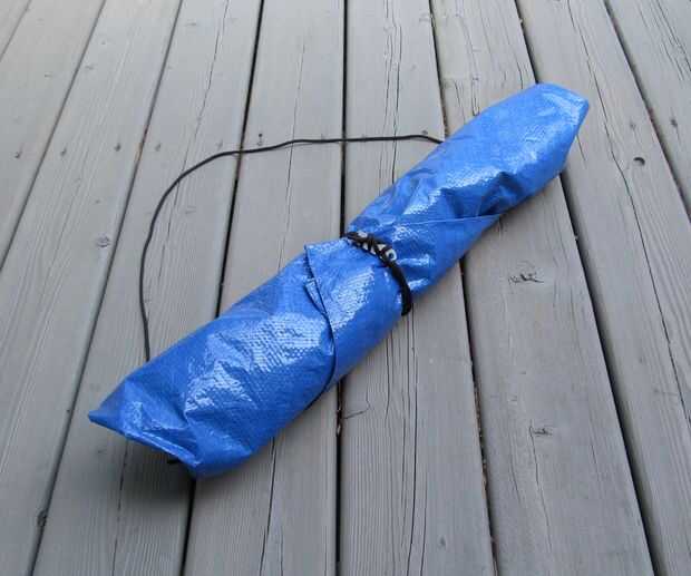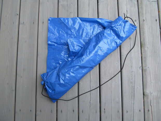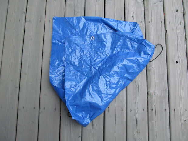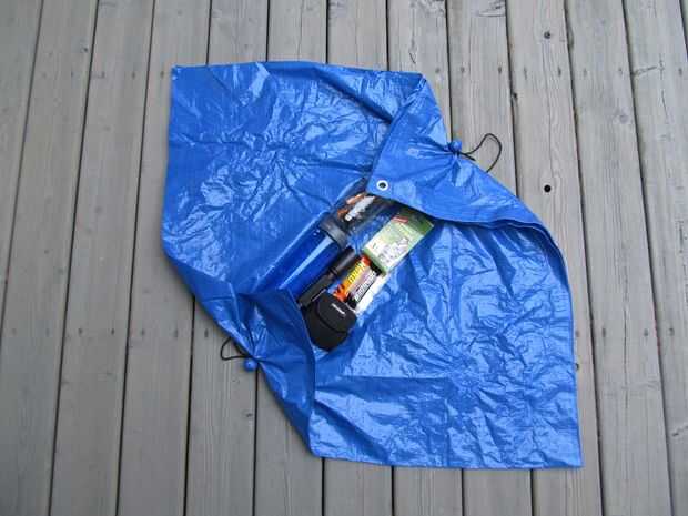 -Doble una esquina de la lona sobre el contenido del paquete.