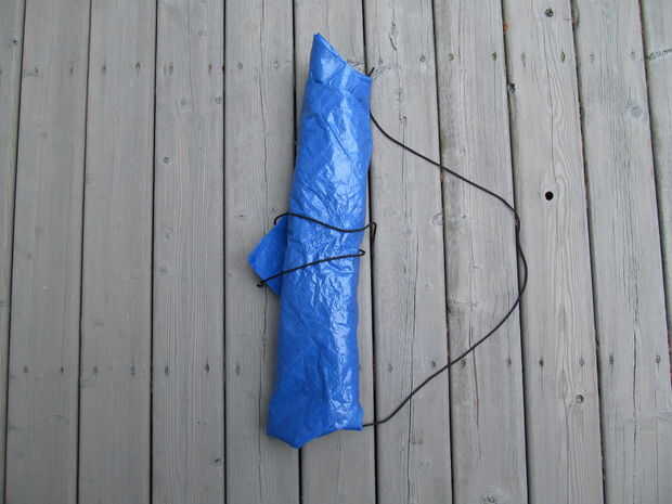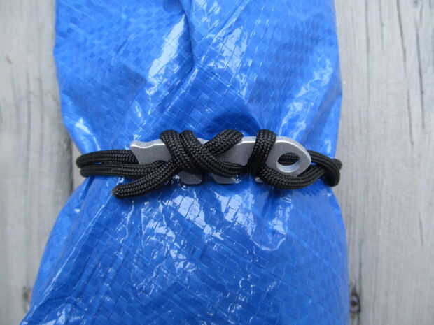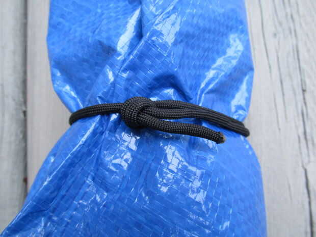 -Envuelva bien la sección de 3 pies de paracord alrededor del centro. Sujételo con un nudo de cazador furtivo o la espina de pescado utilizando el lazo básico.