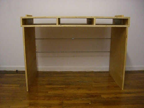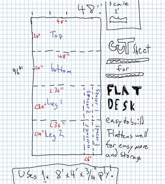 Yo quería hacer un escritorio que podía ser desmontado y embalado plano, hecho de fuentes pocos y fácilmente obtenibles con herramientas sencillas.