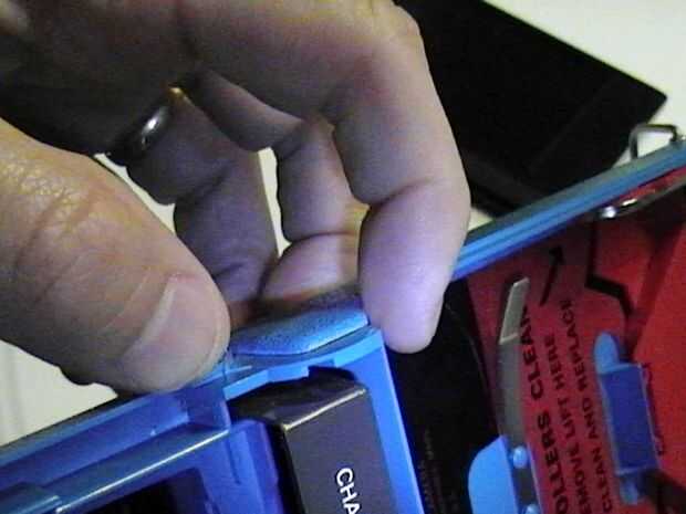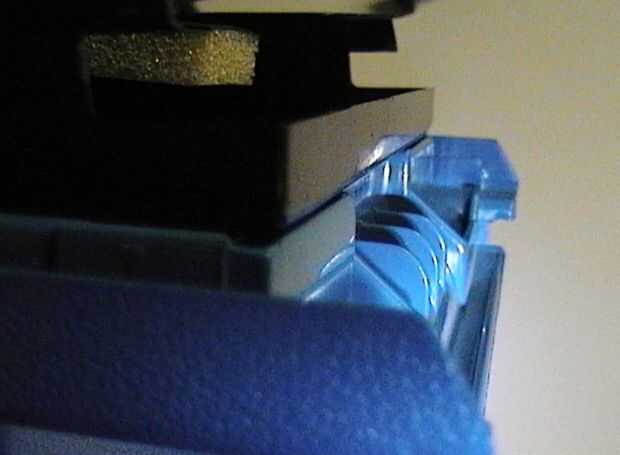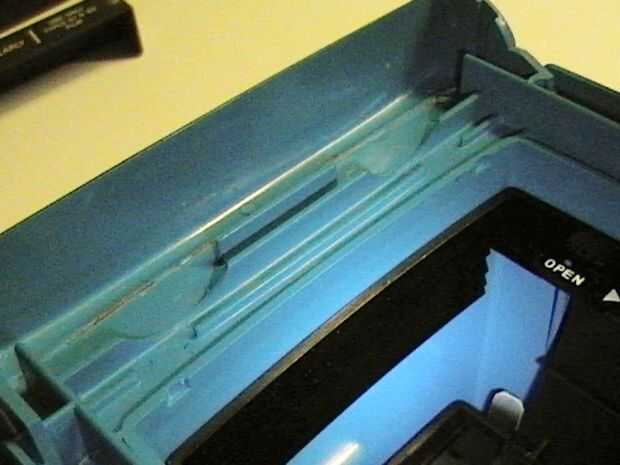 3. una vez que la parada se ha ido, examinar la zona que cubría la parada. Usted verá algunos cantos (otra vez para parar la película de la 80 serie) que deben tomarse hacia fuera antes de que el nuevo paquete de película se pone plana. También puede utilizar una dremel para moler o utilizar un par de pinzas para romper las crestas.