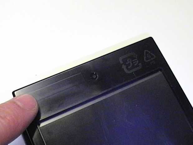 1. abra un nuevo paquete de película de la 100 serie. En el frente del paquete, coloque el rectángulo levantado fuera del plástico. Use esto como guía para su corte.