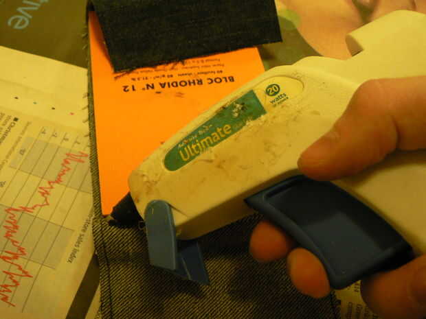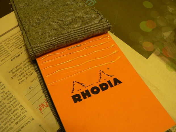 Aplicar líneas en el interior cubierta y doble tapa frontal del dril de algodón.