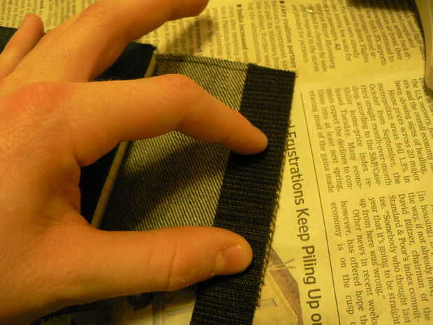 La mejor manera de colocar al otro lado del Velcro es pegarse a la primera parte, despegando el adhesivo, aplicando pegamento y doblar sobre la almohadilla y presione hacia abajo.