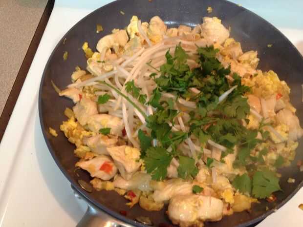 esta es mi versión de Pad Thai con los ingredientes que pude encontrar en mi armario, nevera y congelador. Todos juntos hacer este delicioso plato tomó alrededor de 15 minutos para hacer. Dependiendo de su habilidad y confianza y es lo bueno de la es