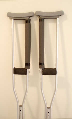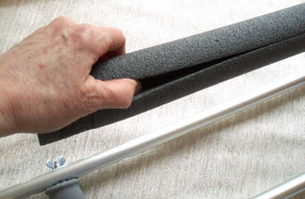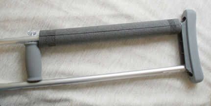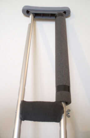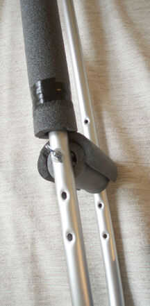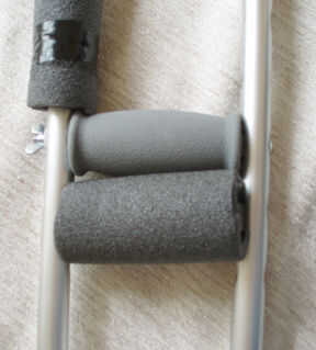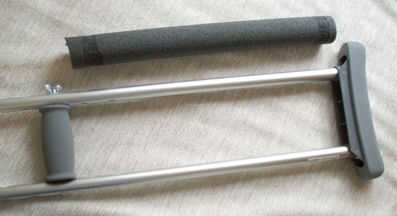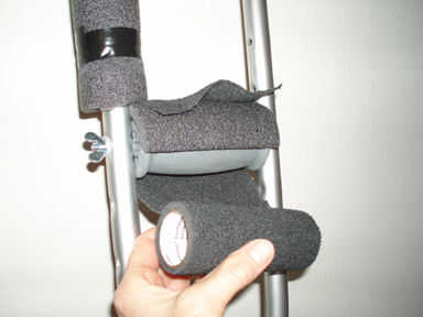 Mi esposo está en muletas, por primera vez. Su mayor queja ha sido dolores codos de él golpeando con la parte posterior de la muleta. Relleno parecido podría ayudar. Poner aislamiento de la pipa por el tubo de aluminio los codos de repuesto y ofrece acolchado muy cómodo en las empuñaduras.