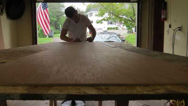 Opcional 1/4"- una hoja de madera contrachapada (a la izquierda de una hoja de $8) para el decking.