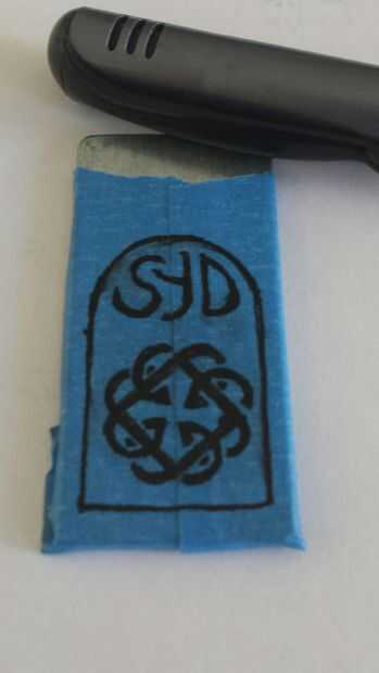 Encontré el diseño del nudo celta para padre e hija y elaboró el diseño para él. Entonces diseñé mi nombre de hijas en el colgante. Dibujó en la cinta con un marcador de punta fina. Tuve un q-Tip mojado en la mano para arreglar los errores... vino en bastante útil.