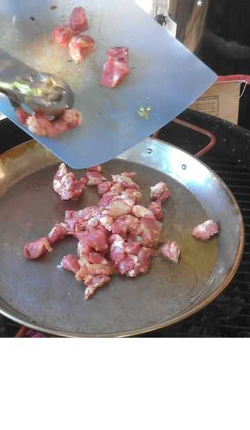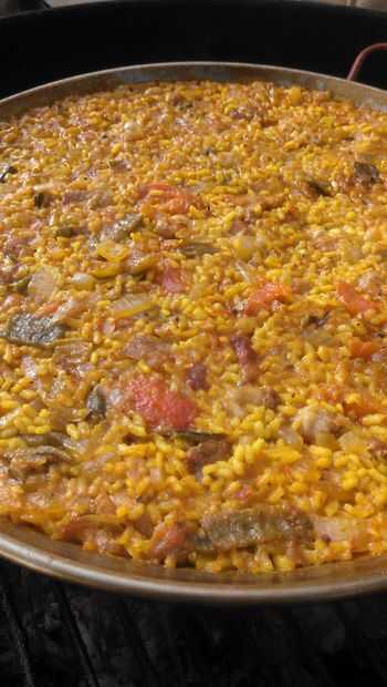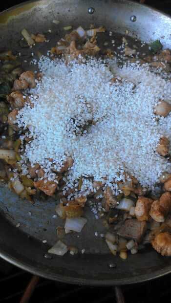 7. en este punto, se debe hervir su paella. Continúe añadiendo líquido según sea necesario.