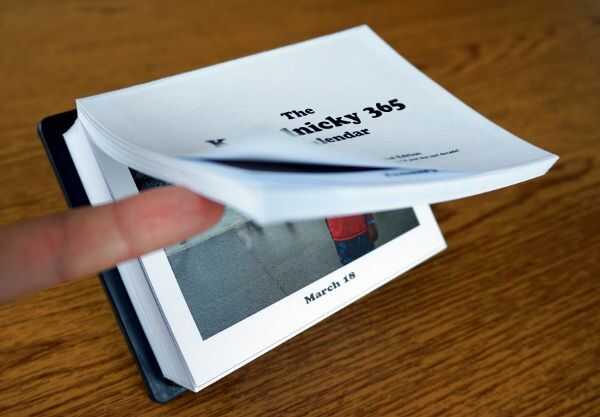Se trata de cómo hacer un calendario con foto de página al día de todo color, donde hay una foto por página para cada día del año, con las páginas adheridas juntas en la parte superior para que cada día la hoja del día anterior puede ser pelado/rasgado apagado (al igual que los calendarios de página por día se puede comprar.)