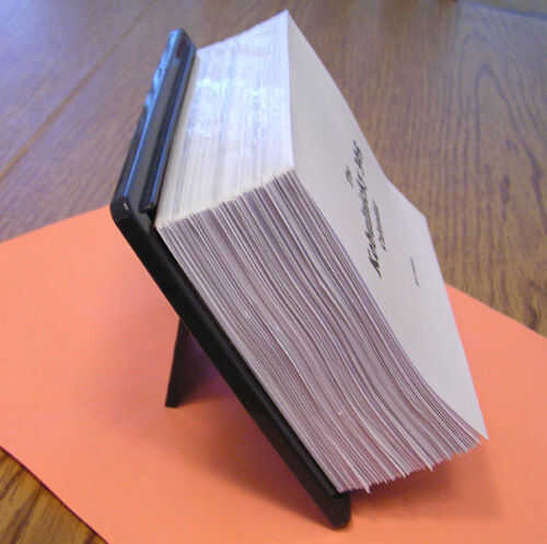Última necesita pegar su calendario a un soporte. Casualmente han recogido viejo calendario de página día plástico soportes de amigos, familiares y compañeros de trabajo. (Pero si no tienes esta opción, es posible hacer un soporte de cartulina gruesa bastante fácilmente). Soportes rectangulares según la dimensión de nuestro calendario mejor que los de Plaza. El stand de negro en la foto vino de un calendario de página día tiras cómico de Dilbert y era del tamaño perfecto para nuestro calendario de 5.5 por 4.25 pulgadas. El soporte cuadrado (rojo) es un poco más alto, que deja parte de la base expuesta, pero el ancho está todavía bien. Ya sea el trabajo, pero me gusta cómo el negro soportes rectangulares proporcionan un ajuste óptimo.