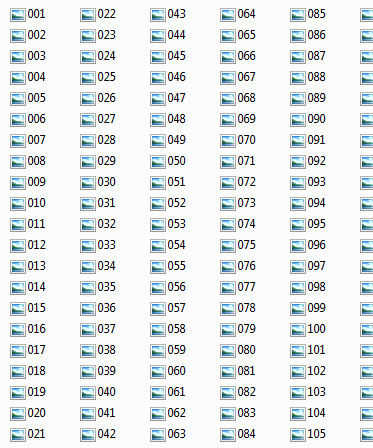 Ahora es el momento para cambiar el nombre los archivos de foto digital 366 numéricamente para que coincida con el número de diapositiva de la plantilla de calendario. Por ejemplo, la foto de la diapositiva 1 (1 de enero) se consigue renombrado de algo así como IMG2864.jpg a 001.jpg.