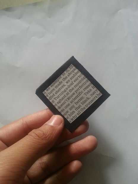 Corte pedazos de periódico ligeramente más pequeño que el papel negro y me pegó en la parte superior del frente del marcador y en la parte posterior. No tienes que pegar periódico en el interior de la parte delantera del marcador porque va ser ocultada por el libro de todos modos.