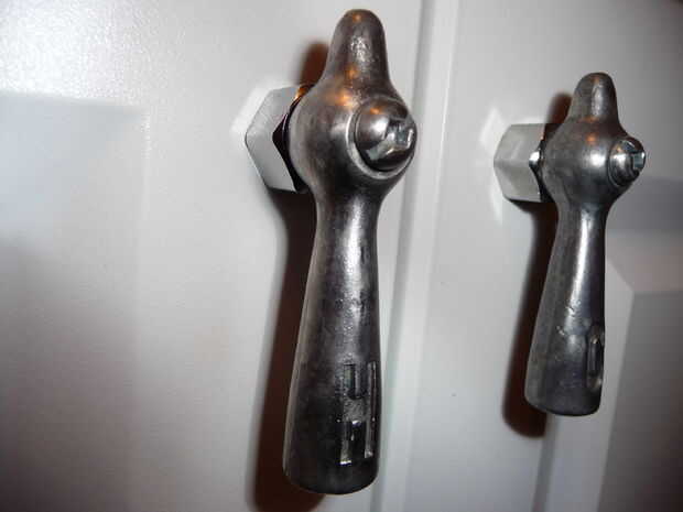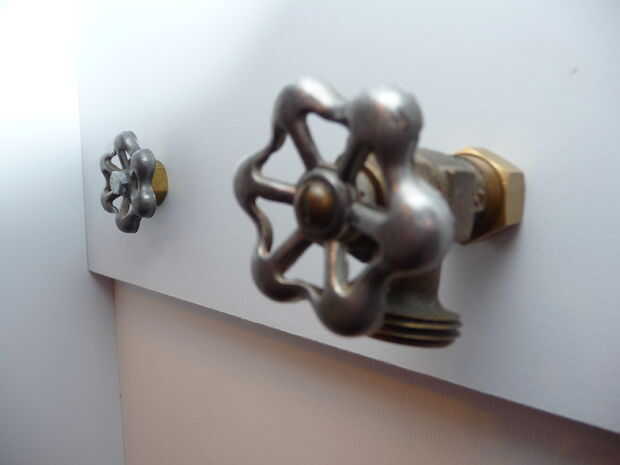 al renovar mi cuarto de lavado, que quería mantener el carácter y el encanto de los grifos viejos y cortes, sin utilizar la plomería (mal funcionamiento) viejo. Terminé reasignación de propósitos para servir como ganchos y tira de la puerta (y ahorrar algo de dinero en el proceso de liquidación).