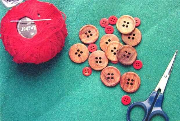 Aquí estoy sólo utiliza botones, hilo de algodón, perlas etc....