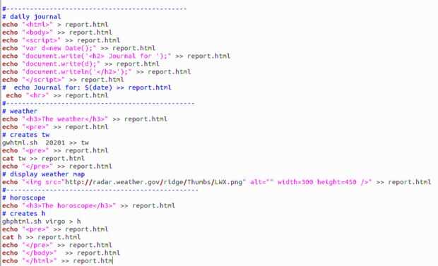 Nota: gwhtml.sh y ghphtml.sh estarán aquí pronto. cambiadas Computadoras y los archivos están en el disco viejo. Asegúrese de cambiar el signo del horóscopo y el código postal del tiempo según sea necesario.
