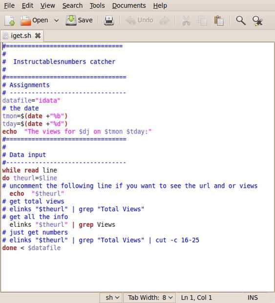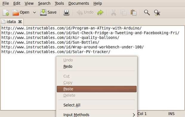 Permite decir que quiso saber cómo varios instructables están haciendo. No tuvo el tiempo para hacerlo con una interfaz gráfica de usuario. es tu tarea. Sólo recogió unos instructables desde la primera página como ejemplo. Tienes que crear un archivo de datos con la URL o dirección web de instructables que han elegido. Haga clic en los enlaces y copiar enlace y luego pegarlo en tu editor con el archivo de datos (consulte la previa instructables en página raspado si usted tiene alguna pregunta).