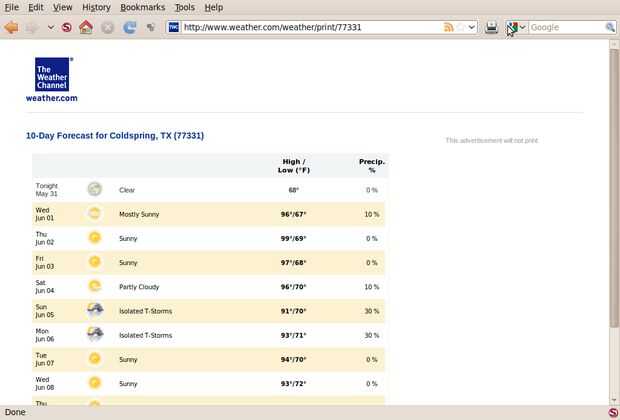 Elinks "http://www.weather.com/weather/print/ $ZIP" > del tiempo; tiempo del gato | grep hoy