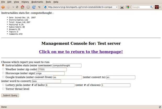 El objetivo del proyecto es tomar el mando como archivos por lotes y hacerlos accesibles desde la web. Podrás hacer tu propia página web y no tener que depender de alguien para preparar para usted. Web para raspar de nuevo a la web la página otra vez
