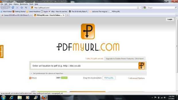 Ahora, no importa de qué página web tu por puede "PDF su URL" simplemente haciendo clic en el bookmarklet... (Foto 2 y 3)