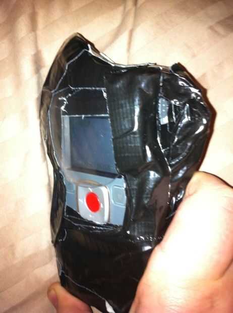 Como ustedes saben, no se puede proteger una cámara pistola sin la lente protegida! Aquí es donde vienen las gafas de tiro Remington. Con suficiente fuerza, puede tirar las lentes de las gafas, son la clase clara! Tomar su cámara de cinta envuelta de conducto y coloque la lente de gafas de tiro horizontal encima de la lente frontal. Esto creará una esfera de protección alrededor de la lente, que no puede ser roto por cualquier airsoft BB o paintball. Para cinta aislante en obtener solo unas tiras de cinta adhesiva, cinta en la lente de los anteojos, asegurándose de que no entra en la cámara de la lente y sólo la cinta en sin bloquear los botones. Repita este proceso en el otro lado pero poner la lente en ángulo, de esta manera usted puede proteger al monitor sin necesidad de bloquear el uso de los botones directamente debajo de ellos. UF, esto es mucho más fácil de ver en las imágenes. Una imagen vale 1000 personas palabras, mira abajo.