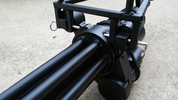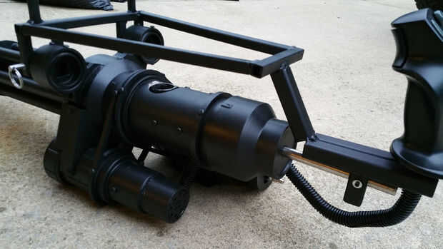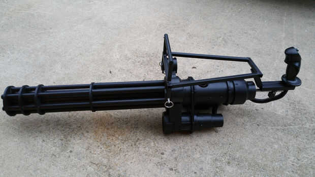 En general estoy muy contento con esta versión. Los barriles se tambalean un poco cuando Haz spinning pero eso es debido al juego en el cojinete y podría conseguir un cojinete más si quería arreglarlo. No se ha ajustado la pistola, sólo para cambiar a modo automático completo. No he probado a un ritmo más rápido de fuego todavía pero va a hacer pronto para ver qué tan rápido puedo conseguirlo para disparar. También más adelante planea poner y el codo en la tolva es ahora y correr un tubo a una mochila y la fuerza de la pintura habrás en ya que mi tanque será de todos modos en mi espalda.