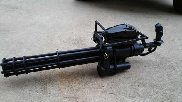 Una vez todo seca, es hora de pintarlo. Usé una imprimación plástica y un negro plano estructurado que recogí en Lowe. Asegúrese de que tapan todos los agujeros para el motor y paintball pistola no Haz pintado.