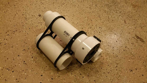 He añadido un tubo de 3" de PVC a la cámara principal y también en el lado al regulador de la casa. Para montar el regulador de la vivienda a la cámara principal que tuve que crear otra montura de anillo doble que era ligeramente diferente que el primero se para el motor y utilicé 2 de estos.