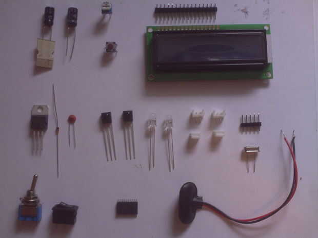 La mayoría de estos componentes ya había tenido en la mano, pero le calculo el costo de este proyecto para ser alrededor $30-$40. No he mostrado alguno de los componentes SMD (a excepción de la foto) en la foto de abajo.