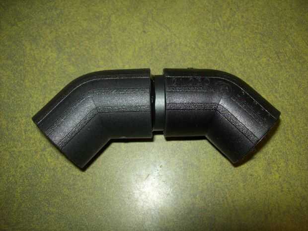 Ahora toma esa pieza que acaba de hacer y empuje el otro adaptador de alimentación cuello sobre ella hasta que forma un ángulo de 90 grados con la esquina cortada.