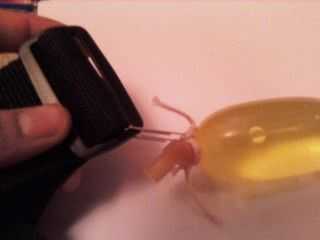 se trata de la pintura / Granada agua hice. Tomé un segmento de tubería del látex quirúrgico de un tirachinas y había atado un apretado nudo en un extremo y bombea agua en el otro extremo hasta que infla como un globo. Luego tomó una cápsula con un a