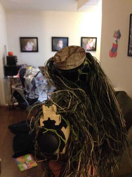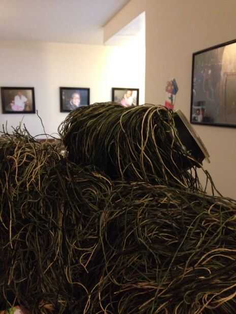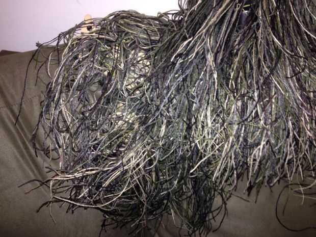 esto es ideal para airsoft/paintball o incluso caza y super barato!Paso 1: primer lo que se necesita;-un par de tijeras-una aguja grande-cadena grande y lana (colores de camuflaje)- y un pedazo de arpillera como grande (ahora sé que esto es difícil d