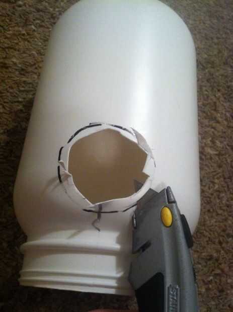 Las botellas de plástico con líneas de centro que utilizaba como punto de referencia. Ayuda a utilizar la manija y el caño alineados.