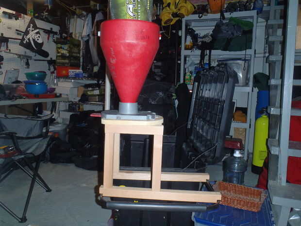 Requisitos para la estación tendría que ser: estable la base para la carga de pintura, luz como sea posible para viajar, conveniente para la carga de pintura y trabajar con la caja de herramientas actualmente mantenemos las vainas. Utilizamos el Pecho de herramienta Stanley® móvil. Usted puede recoger uno en una de las ferreterías locales. Era capaz de apilar dos cajas de bolas de pintura en la parte superior del cargador con una caja de herramientas vacía y no punta. Una persona apoyándose en el cargador pod podría inclinar cuando la caja de herramientas está vacía. Una vez que la caja de herramientas llena de pintura con vainas, creo que sería un problema.