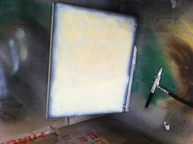 Luego agrega amarillo un poco a la mezcla original de pintura blanca, luego rocíe que en la fabricación de blanco que deliberadamente desigual, el color era sólo una ligera casi magnolia.