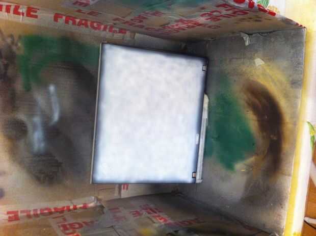 se necesita un lugar para del aerosol usar una caja de cartón con un extremo cortado que funciona realmente bien.