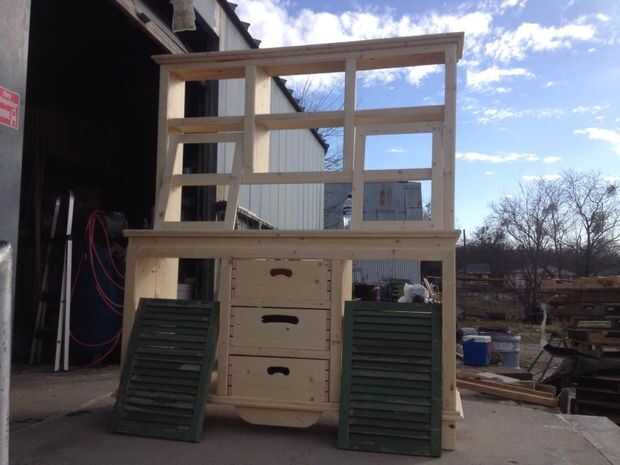 El áspero de la carpintería es el siguiente paso, mi esposa quería que la parte superior para tener almacenamiento para platos. También quería ser capaz de mostrar sus jarras de bebida. Comencé cortando la madera a los lados y los estantes superiores se hacen de 1 x 12. Para dar la profundidad gabinete en la parte inferior me uní a dos piezas de 1 x 12 con tornillos de agujero de bolsillo. Los estantes de fondo son madera contrachapada, quería los estantes para ser fuerte y resistente a la deformación ya que sería tan grande. Después tuve la estructura principal montada, comencé en la parte superior del área de almacenamiento inferior. Quería ir con un look único, así que corte trozos de diferentes largos y anchos. Luego ponerlos juntos como un rompecabezas. Puede ser visto en la primera foto, sólo tiene que utilizar su imaginación al hacerlo. A continuación recortar a los perfiles de la moldura, el primero fue un simple en Ronda (1/2 redondo sobre la broca de fresadora). Terminé haciendo este 3/4 "x 3/4", el otro que hice era un poco Cala de pequeño tamaño. He hecho 3/4 "x 1 1/4" ajuste. El último paso es hacer pies para el gabinete, decidió cuánto y alto quería los pies para ser. Después de hacer un espacio en blanco que mide 6 "x 12" x 3/x 4", que bosquejar el diseño con un lápiz. Cuando terminé el diseño que recortar en la sierra, después de cortar el primero que trazó a los otros siete pies y había conectado al gabinete.