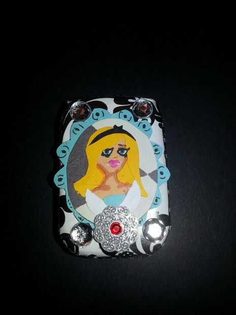 Una vez que estuviera pegado abajo pegué sólo diamantes en cada esquina de la tapa.