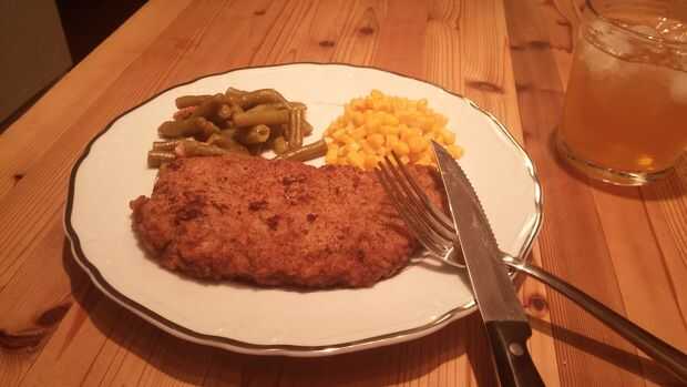 Como un niño, mis padres viajaban mucho. Por supuesto había que comer. Siempre fui alimentado filete de pollo frito, puré de patatas, judías verdes, salsa y ensalada.  Para ser honesto fue un verdadero placer, ya que nunca lo tenía en casa. Por algun