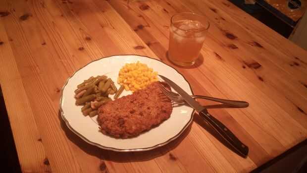 Como un niño, mis padres viajaban mucho. Por supuesto había que comer. Siempre fui alimentado filete de pollo frito, puré de patatas, judías verdes, salsa y ensalada. Para ser honesto fue un verdadero placer, ya que nunca lo tenía en casa. Por algun