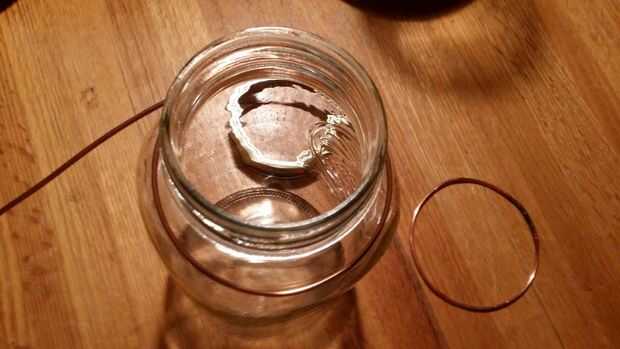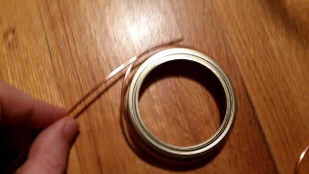 Usé la tapa de tarro sellado anillo de una forma que me aseguré de traslapo mi viento para hacer el anillo más grande entonces la abertura del frasco antes de la prueba de alambre de corte ajuste sobre la boca del frasco
