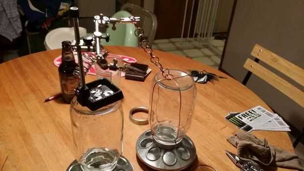 Entonces había montado mi cadena en mi tercera manos y comenzó a cerrar los enlaces individuales. Asegúrese de que usted utilice pinzas para ajustar los vínculos como enlaces vecinos estará caliente de la calefacción de su vecino.