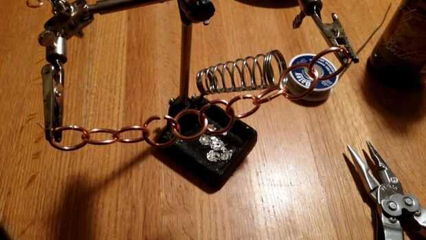 El proceso que utilicé para soldar los enlaces en una cadena es la misma que se describe en el paso más grande del anillo anterior. Siendo una parte más pequeña se calienta más rápido. O puede usar cordeles u otros cordeles. Me gusta el look cobre y fue haciendo una cadena.