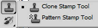 Clones de la herramienta para clonar la información de la primera zona (Alt clic) a la segunda, en la forma de la herramienta pincel